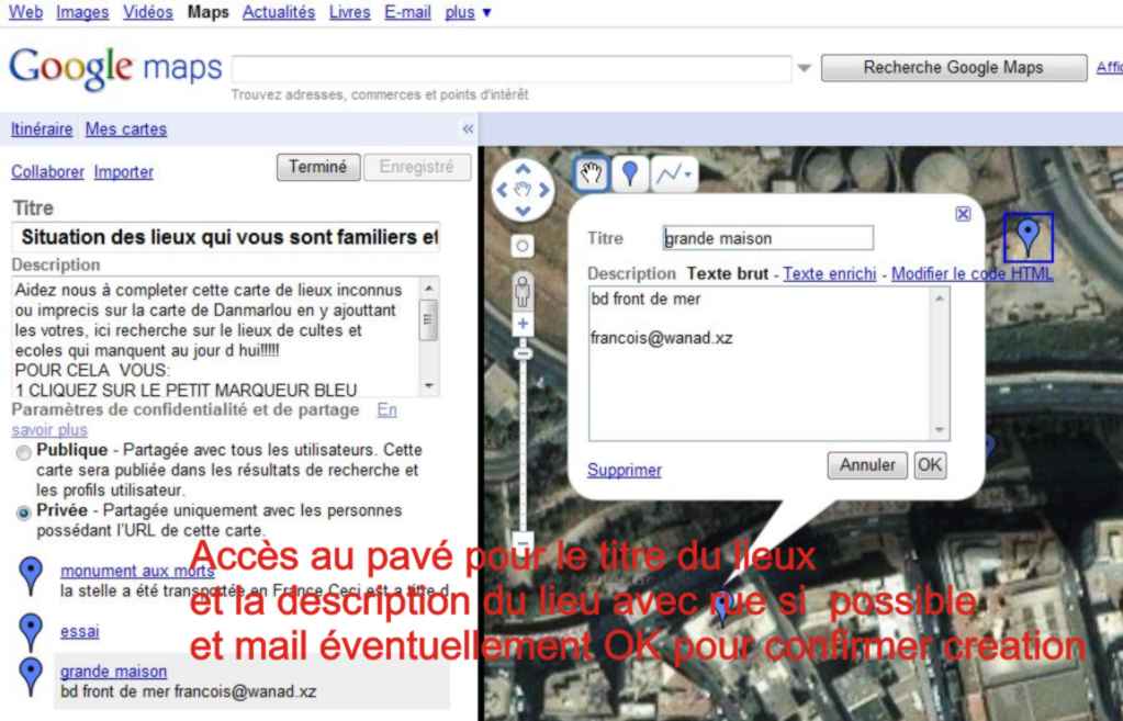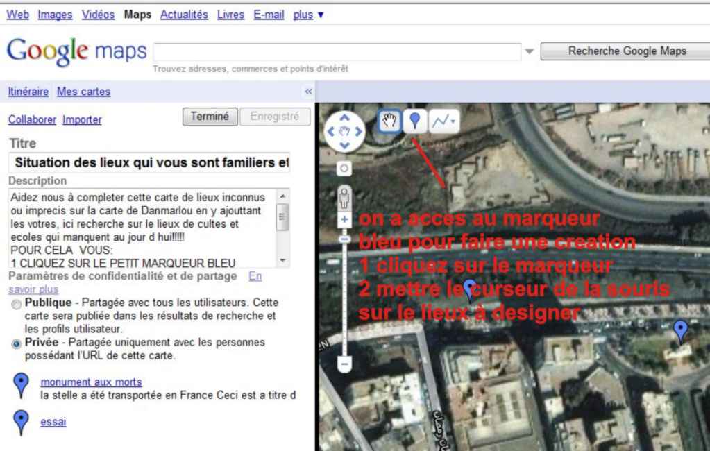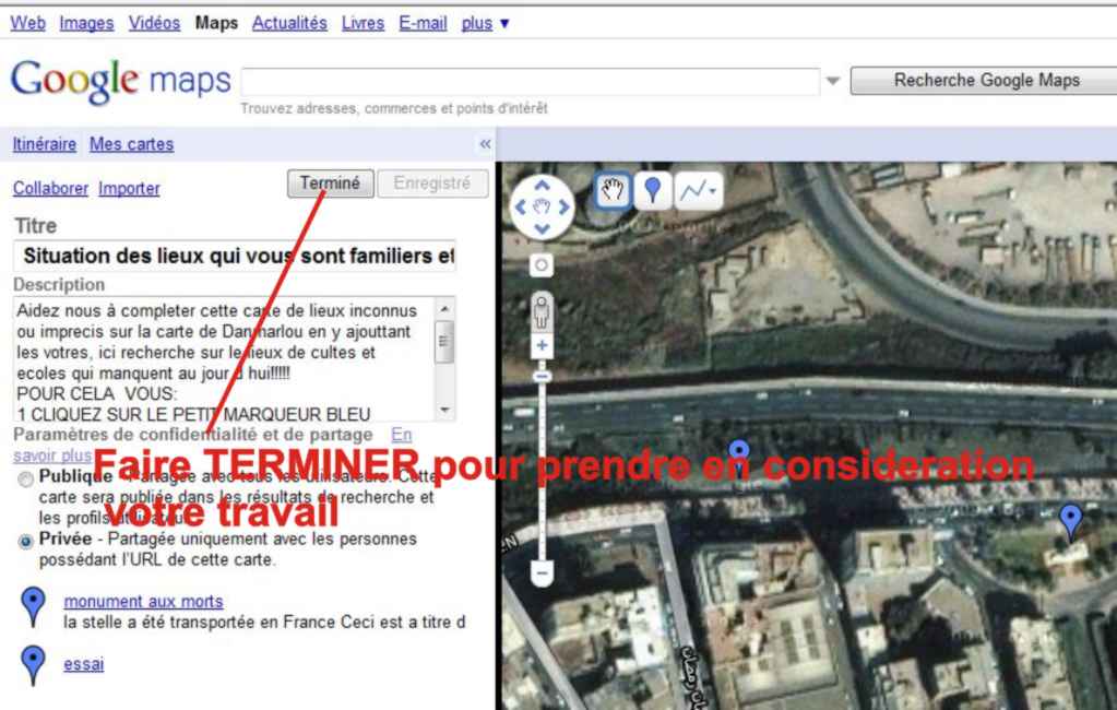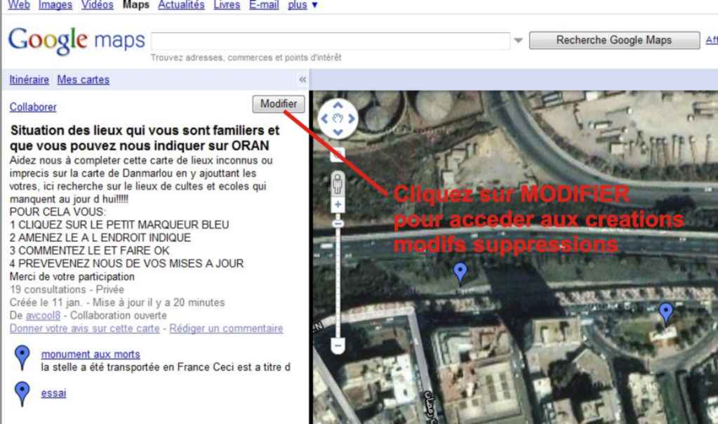 temples marabouts cimetières………. Instructions de mise en place de la mémoire de nos lieux à un travail participatif Vous pouvez compléter vos infos en cliquant sur ce lien ci dessous et lire ces instructions Vous devrez après avoir cliqué ci dessous sur le lien 1 : Cliquez sur MODIFIER en haut à